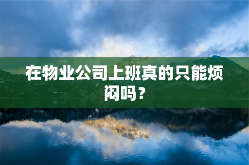 在物业公司工作并非只能陷入烦闷,而是能通过细致管理和高效服务展现职业价值与成就感。